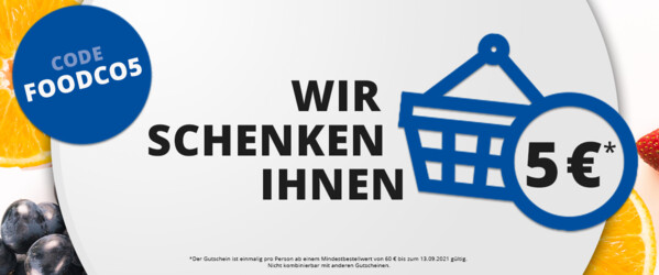 *Der Gutschein ist einmalig pro Person ab einem Mindestbestellwert von 60 € bis zum 13.09.2021 gültig. Nicht mit weiteren Gutscheinen kombinierbar.