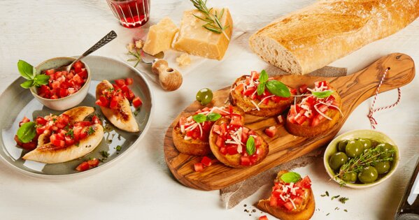 1. Das Ciabatta in möglichst gleich große Scheiben schneiden und diese mit 2 EL Olivenöl einpinseln.
