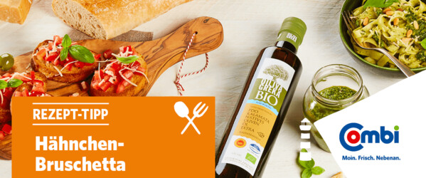 4. Die Petersilie waschen und grob hacken. Das Ciabatta mit dem Pesto bestreichen und dem Hähnchenfleisch sowie den Tomaten belegen, mit Salz und Pfeffer würzen und mit Petersilie bestreut servieren.