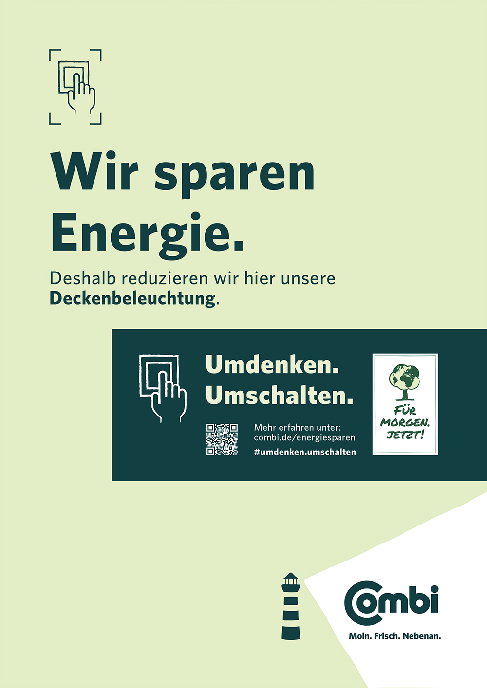 Hinweis für Kund:innen: Achte auf Plakate in den Märkten, die über abgeschaltete Beleuchtungsbereiche informieren. So weißt du, dass dein Einkauf zur Energieeinsparung beiträgt.