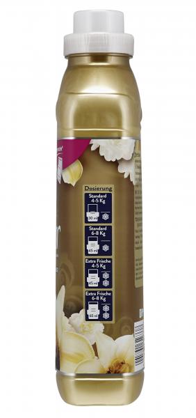 Weichspüler mit einem Hauch von Vanilleduft, gemischt mit Honig, Rosenakzenten und cremigem Pfirsich