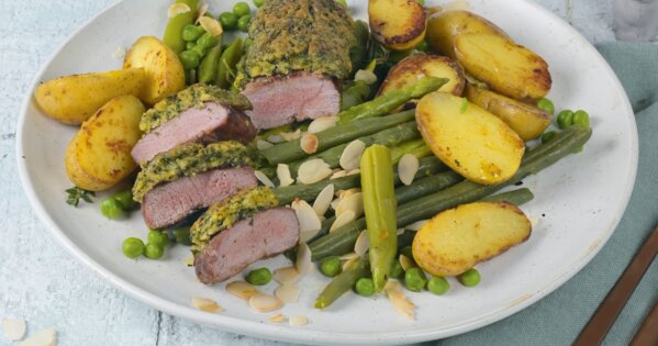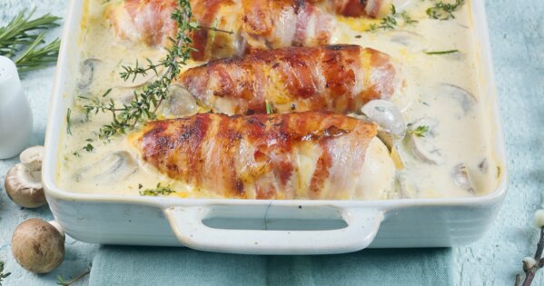 Drei Rezepte, die den Frühling auf den Tisch bringen – von knuspriger Hähnchenbrust im Speckmantel bis zu zarten Lammlachsen mit Kräuterkruste. 🌿