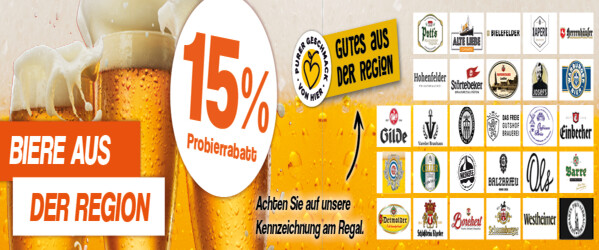 Jetzt 15% Rabatt auf unsere regionalen Biersorten sichern!