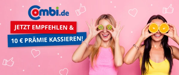 Deine erfolgreiche Empfehlung ist viel wert. Empfehle diene Freunden und Bekannten Combi.de weiter und erhalte pro erfolgreiche Empfehlung einen Einkaufsgutschein in Höhe von 10 Euro für deine nächste Bestellung ab 50 Euro bei Combi.de.