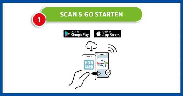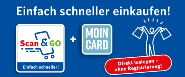 Nutze unsere MOIN CARD App zum schnellen Einkaufen mit der „Scan & GO“ Funktion ohne Registrierung.