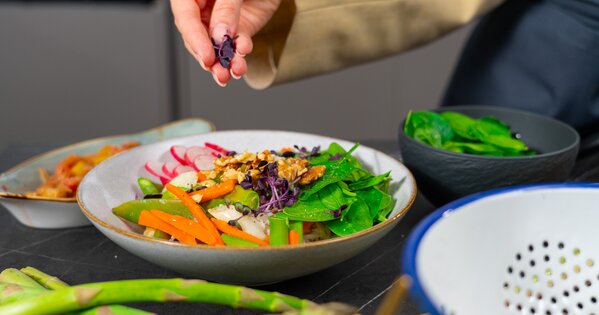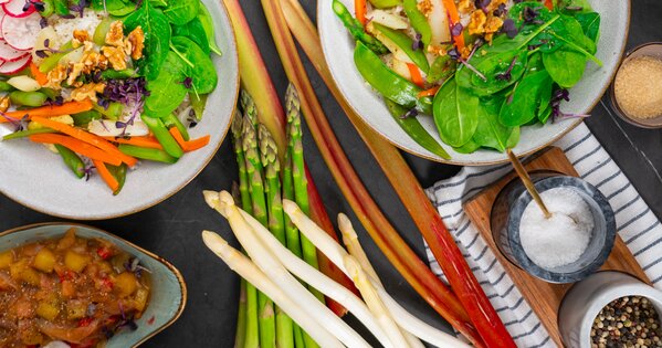 Frische Spargel-Bowl mit Rhabarber Chutney