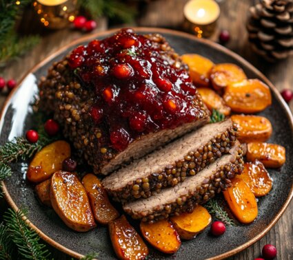 Ein Linsenbraten ist eine köstliche und nahrhafte Option für ein vegetarisches Weihnachtsessen. Kombiniert mit glasiertem Gemüse und einer fruchtigen Cranberry-Soße bietet er eine festliche und geschmackvolle Alternative.