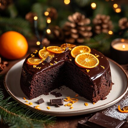 Dieser schokoladige Kuchen mit frischem Orangenaroma bringt eine raffinierte Note auf Ihren Weihnachtstisch.
