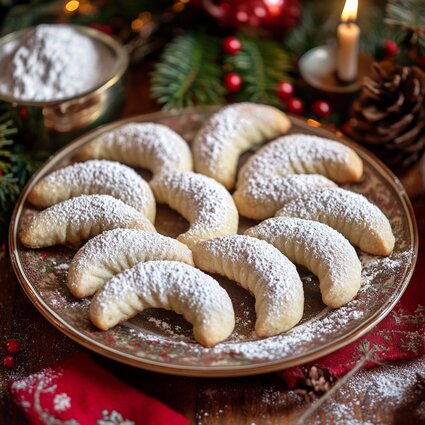 Vanillekipferl sind der Inbegriff weihnachtlicher Tradition. Die zarten, buttrigen Plätzchen mit ihrem feinen Vanillearoma dürfen auf keinem Weihnachtsteller fehlen.