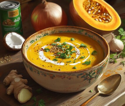 Kürbiscremesuppe mit Kokosmilch und Ingwer