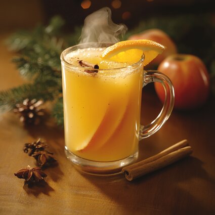 - Apfelsaft mit den Gewürzen erhitzen (nicht kochen).