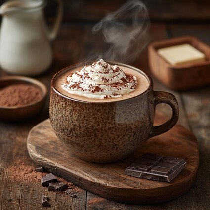 - Schokolade in der Milch schmelzen und mit Kakaopulver verrühren.